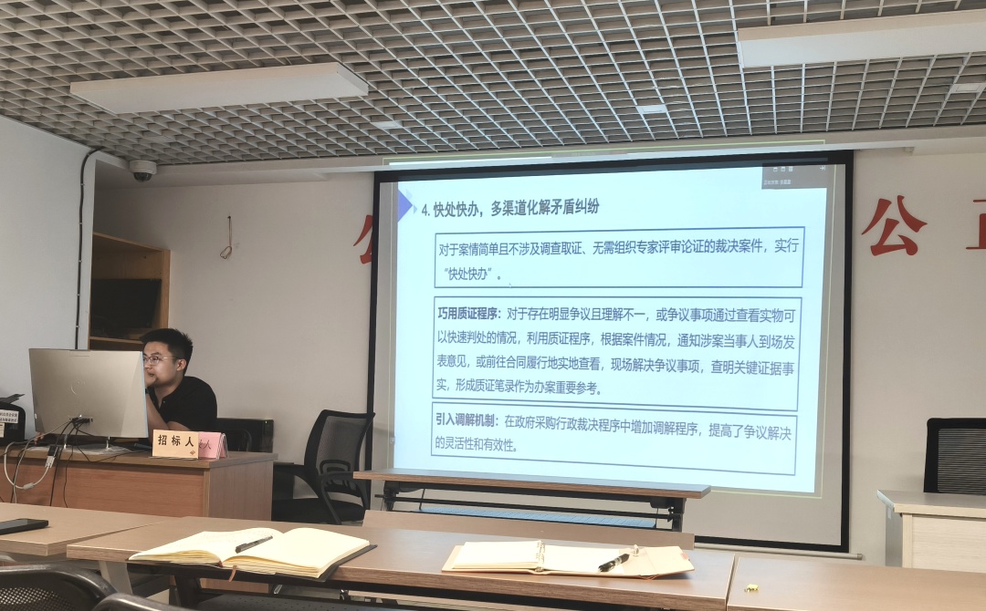 在為期一周的研修班中,云南中咨海外參訓(xùn)團隊深入學(xué)習(xí)了政府采購最新政策法規(guī),重點研析了"虛假投標、圍標串標、惡意投訴、違規(guī)評審"四類典型問題的防范對策。為深化學(xué)習(xí)成果轉(zhuǎn)化成效,云南中咨海外采用"線下+線上"雙線模式,于8月15日組織全體員工圍繞四大核心內(nèi)容展開專題培訓(xùn)會: